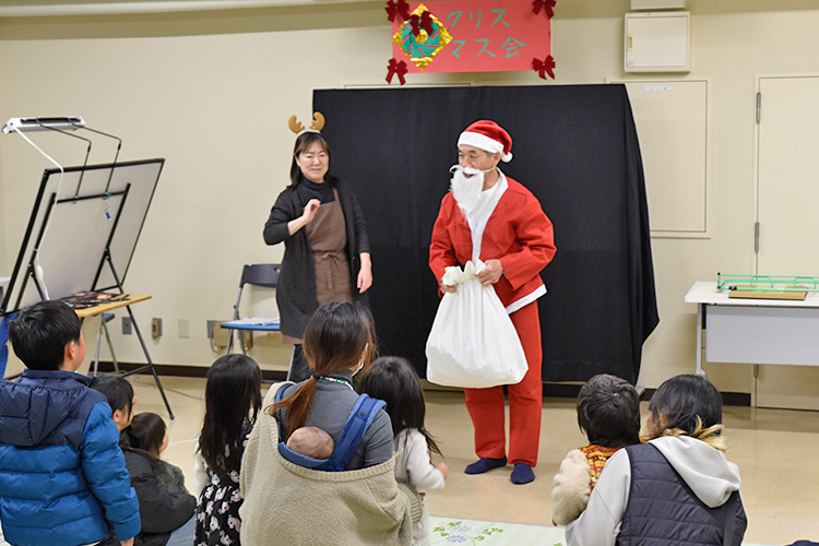最後にはサンタクロースが登場し、子どもたちにプレゼントが配られ、とても楽しいクリスマス会となりました。ご参加いただき、ありがとうございました!